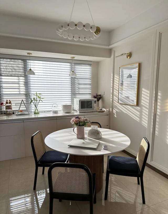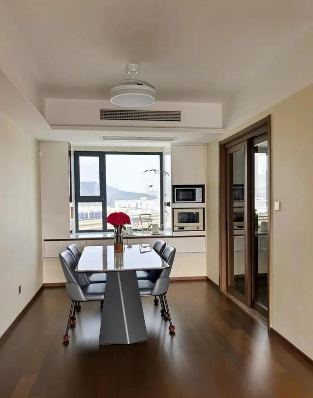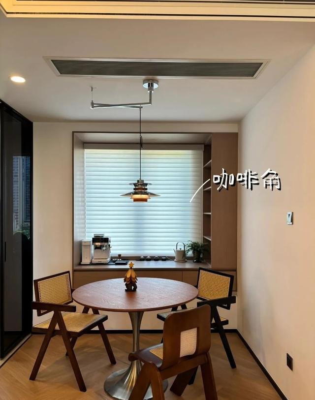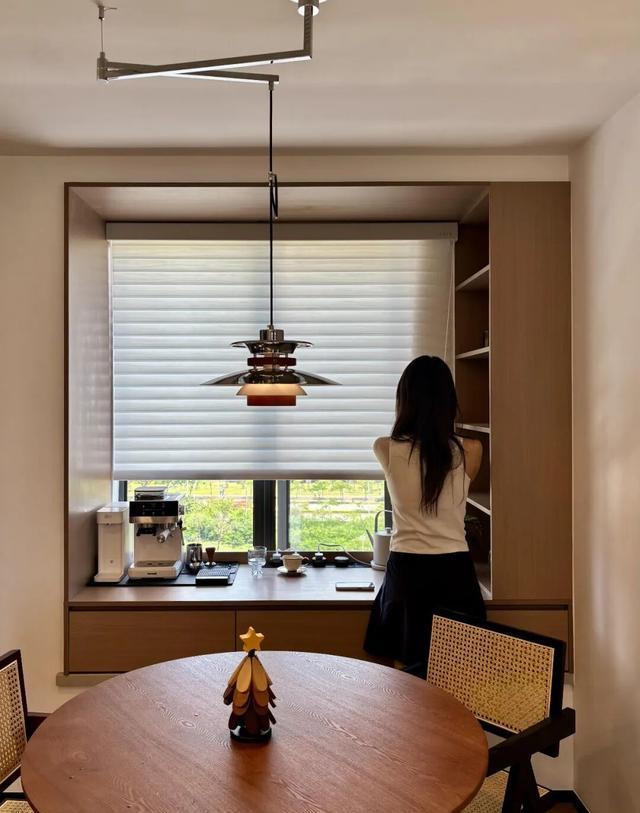 餐厅飘窗的变化最直观:将电磁灶置入石英石操作台,变成简单的厨房操作区,再辅以智能水吧台,可通过APP设定水温,甚至与杯具自动联动。
