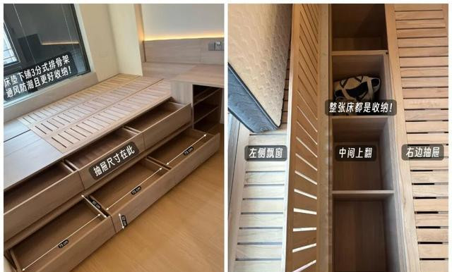 “隐形收纳系统”则利用飘窗侧墙安装抽拉式储物空间,小到鞋架,大到行李箱,都能轻松搞定。